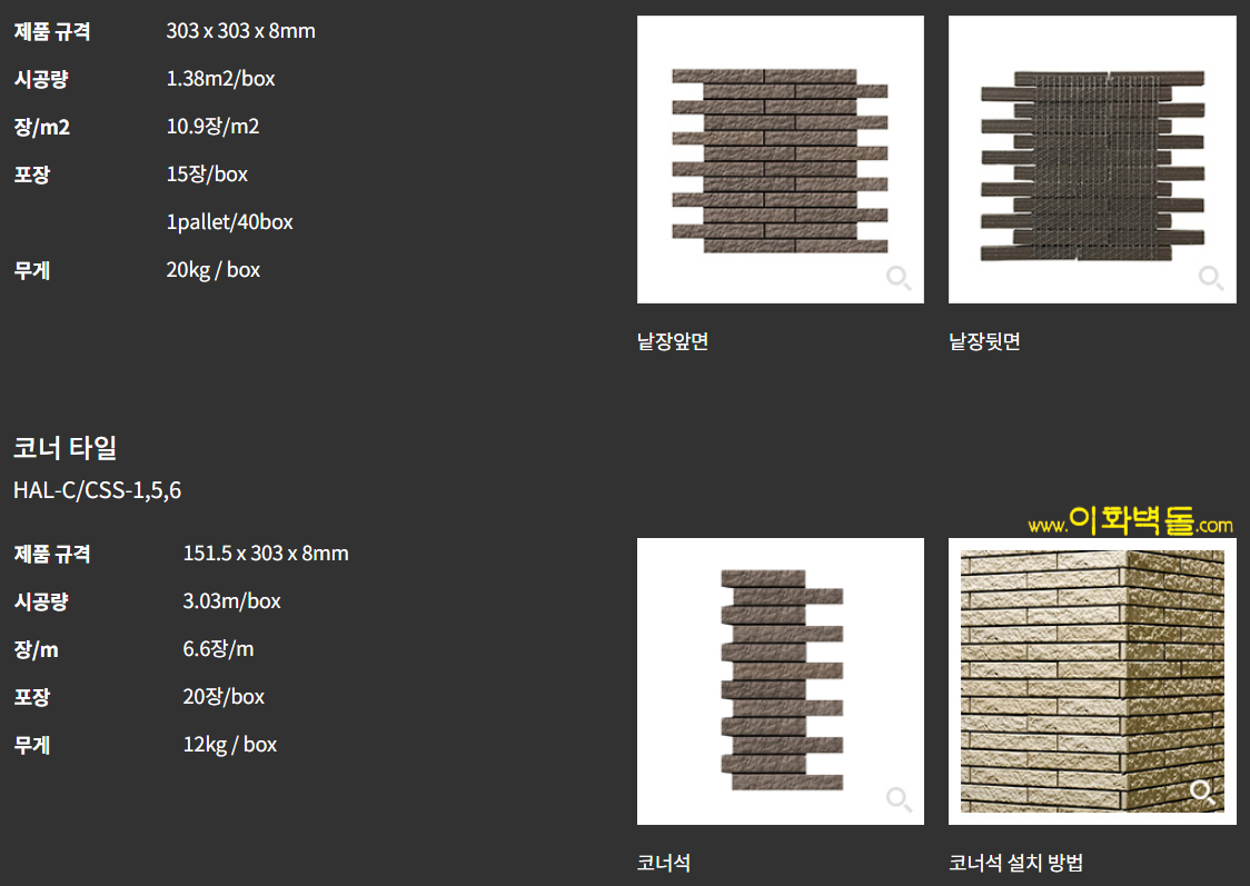 1box = 15장 = 1.38m² / box 중량 20kg