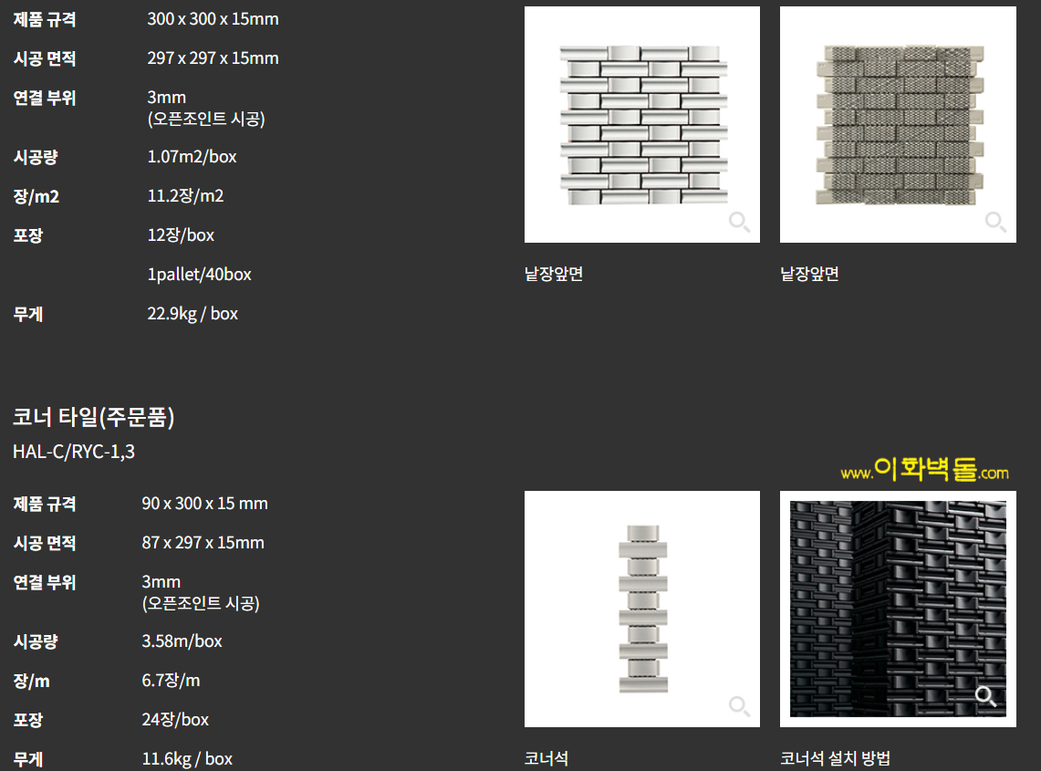 규격 : 300 x 300 x 15 / m²당 11.2장