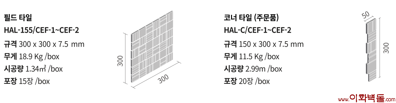 규격 : 300 x 300 x 7.5mm / m²당 11.2장