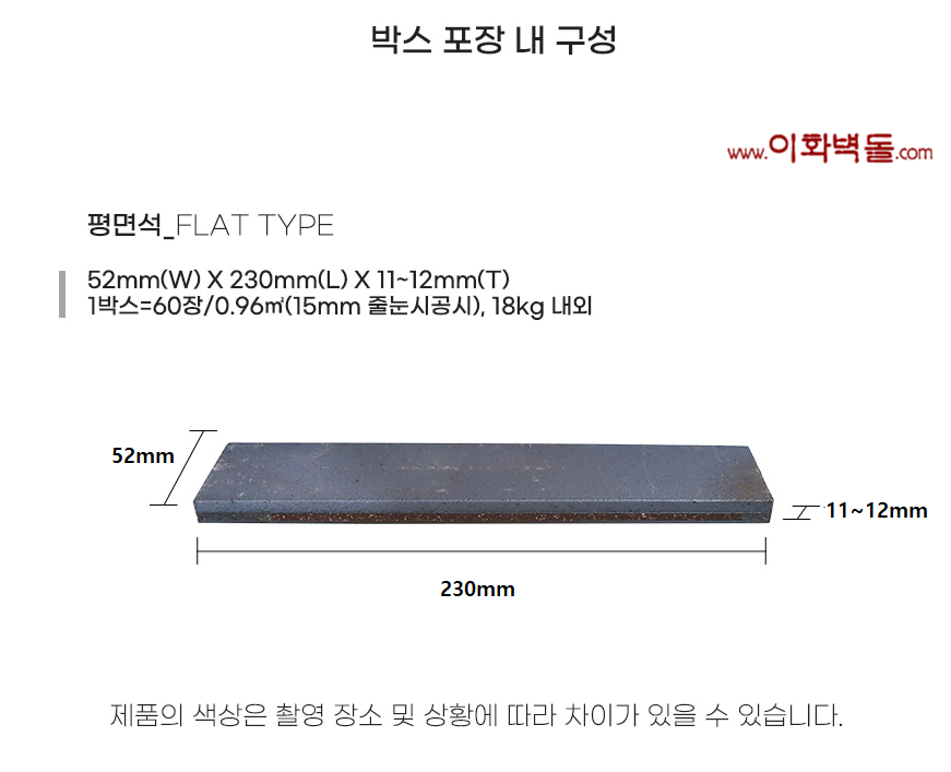 타일 SIZE : 230x52x12T m²/61장 (줄눈15mm기준)