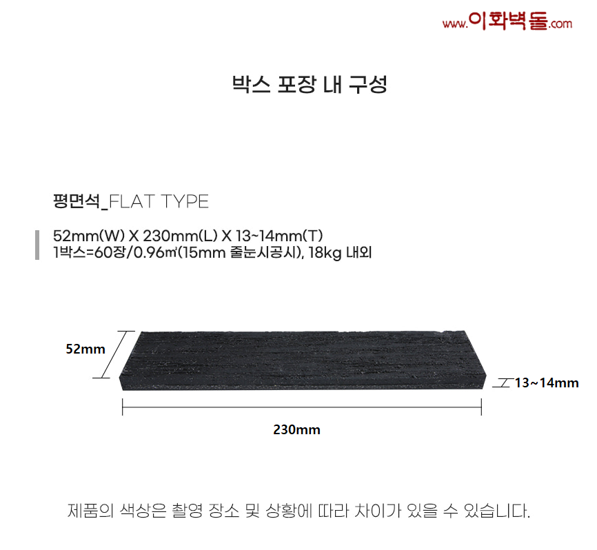 타일 SIZE : 230x52x13~14T m²/61장 (줄눈15mm기준)