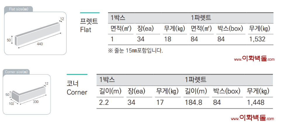 타일 SIZE : 440x50x12T m²/34장 (줄눈15mm기준)