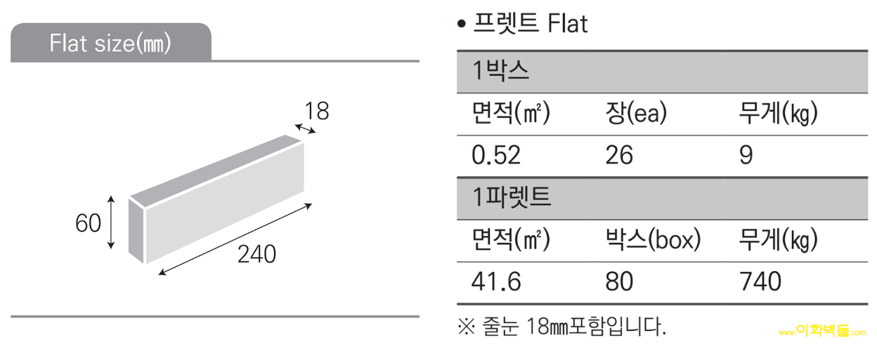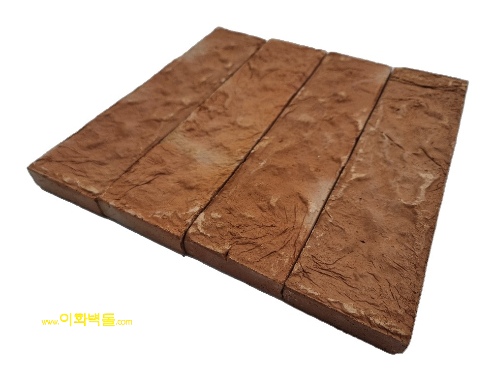 제품명 : 자카르타 레드타일 규격 : 240×60×18 m²당 : 50장(줄눈18mm기준) 1박스 / 26장(1m²) / 9kg 파렛트당 : 41.6m² / 80박스 / 740kg 용도 : 신축건물치장 / 건물외벽 재시공 / 실내인테리어