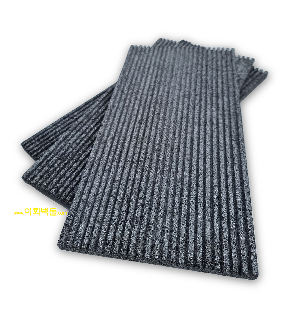 제품명 : 현무암 포니 골판 현무암 포니 골판 / 규격 : 400×200×14m²당 : 12.5장 1박스 / 10장(0.8m²) / 20kg 용도 : 신축건물치장 / 건물외벽 재시공 / 실내인테리어