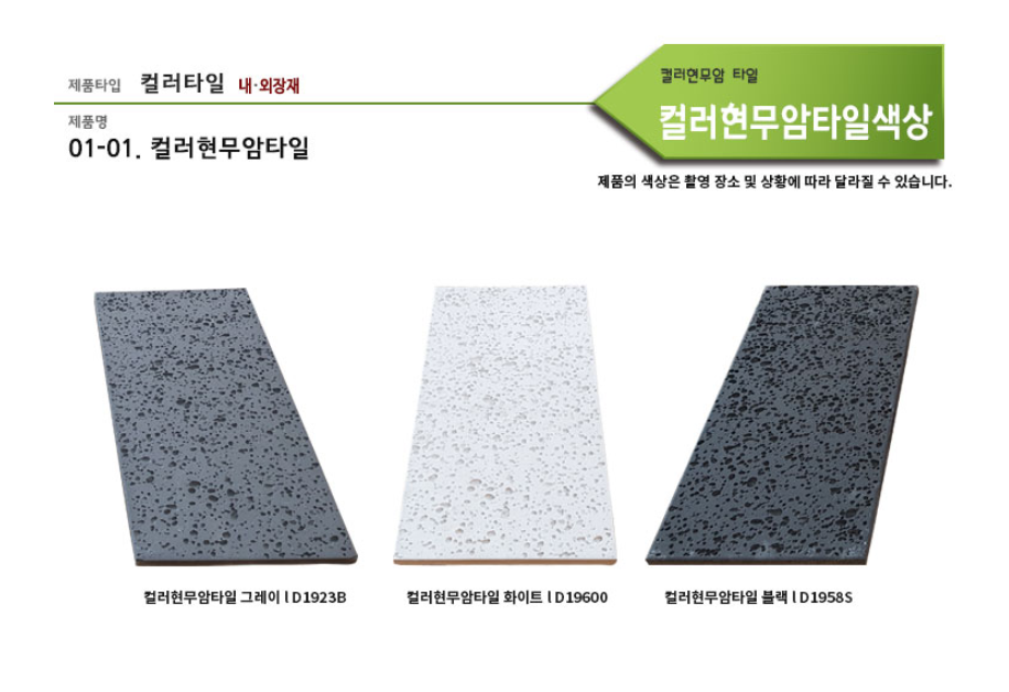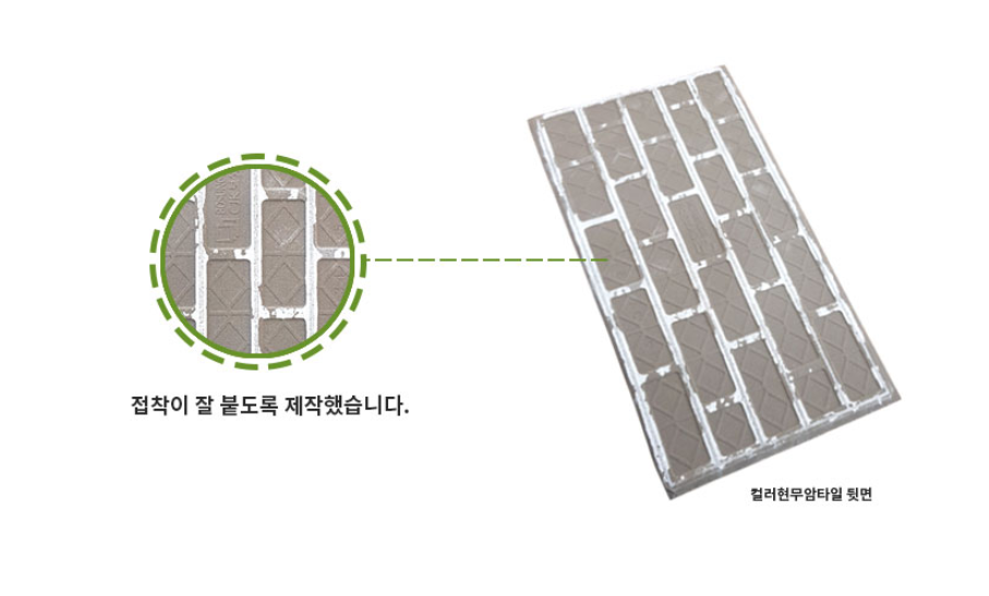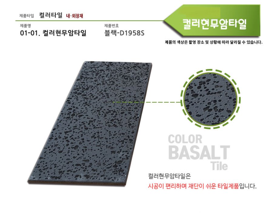 컬러현무암타일 블랙 SIZE : 390 x 190 x 15T m²/12장 1박스당 / 12장 / 20kg / 0.98m² (줄눈15mm기준) 10여 가지의 메지(줄눈시멘트) 칼라로 다양한 시공패턴 연출, 메지(줄눈시멘트) 차이로 다른 분위기를 냅니다.