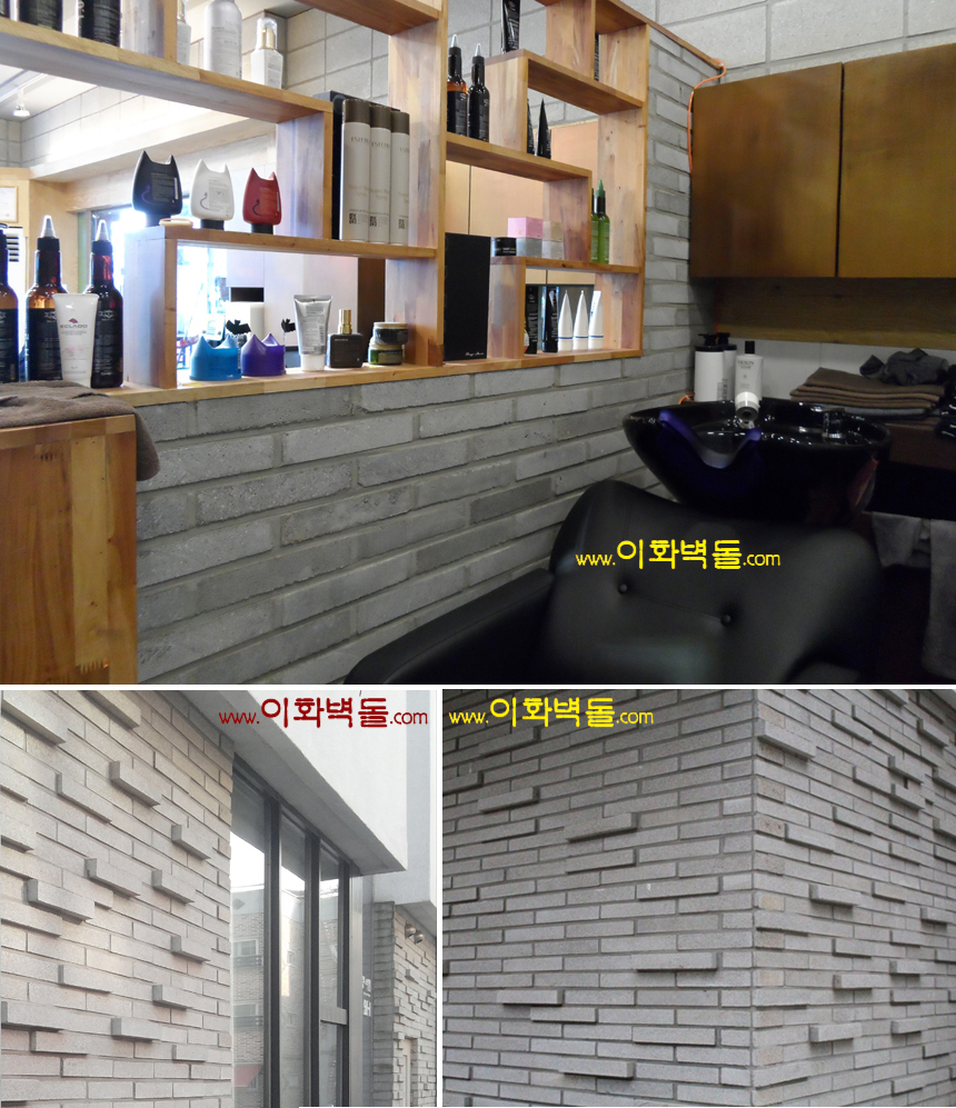 특징 : 벽돌의 자연스러운 면을 절단하여, 석재의 질감을 연출시킨 모노타일제품